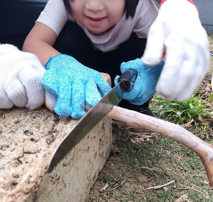 太目で 切るのに 四苦八苦 いたしましたが そこは ベテラン? の 児童たち。 交代交代