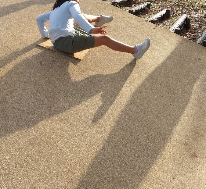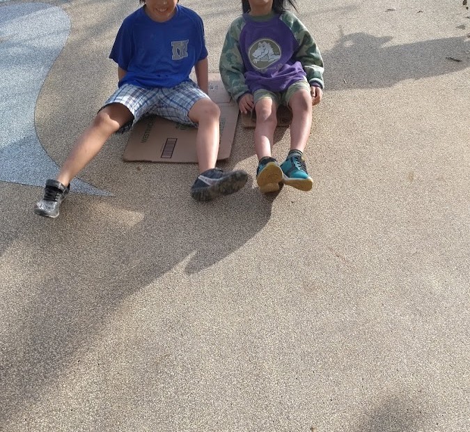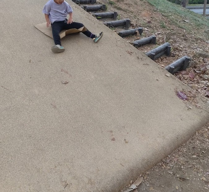すべっている 途中に ダンボールが 離脱。 そのまま すべったら あらっ! ま~ぁ!
