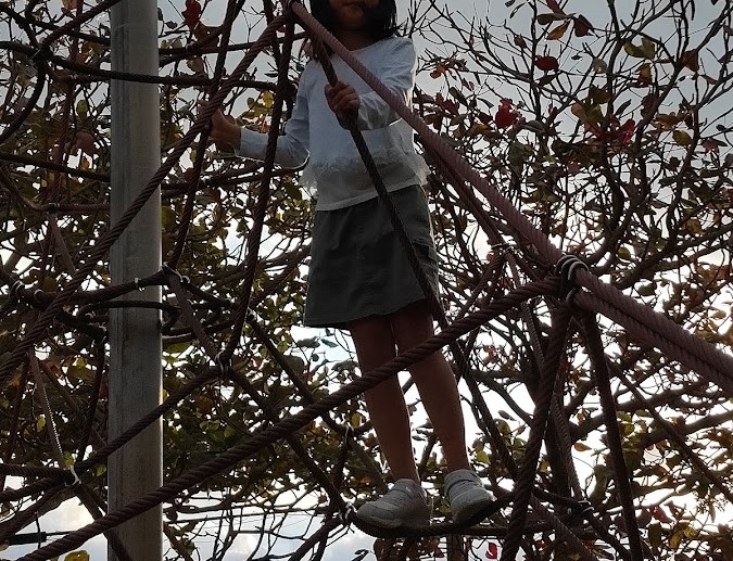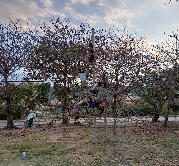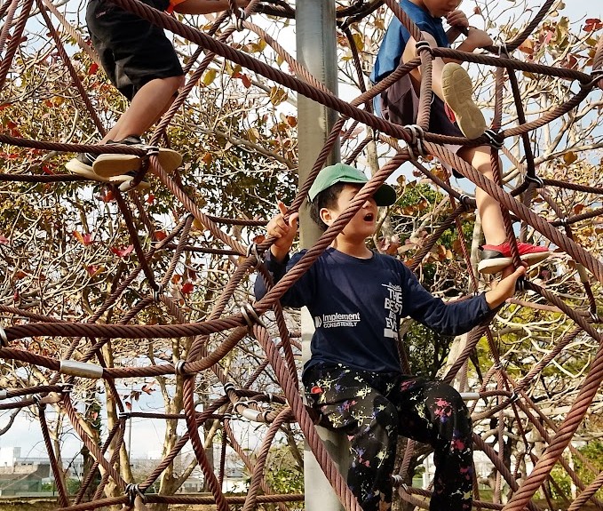 その後、 Rくんの ご提案で ロープ ジャングルジムで みんな 集まって 記念写真とろ~