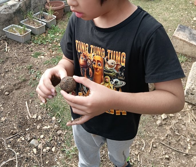 作り始めると おれも つくろっ! と のってきたのは Sさん。 3人とも 泥団子 片手に
