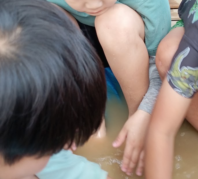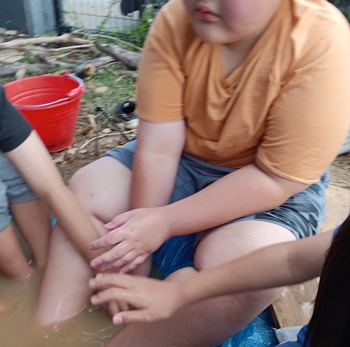 いうことで 児童たちの 妥協案 足湯~っ(≧◇≦)♪ 入れ替わり 立ち替わり 入っている