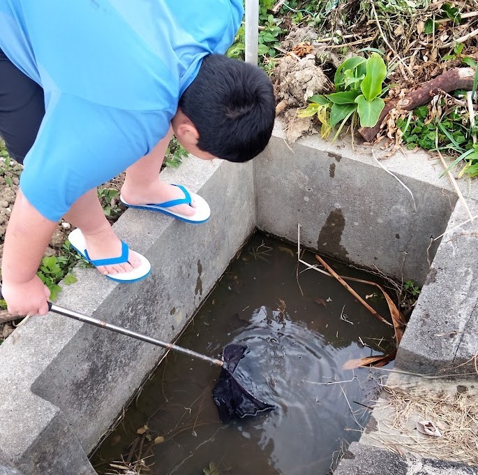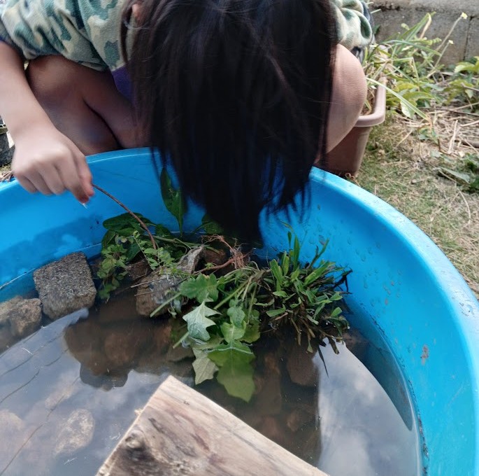 近くの 水場に 生き物を 取りに いきた~い と なっていたんです。 片付けが 終わると
