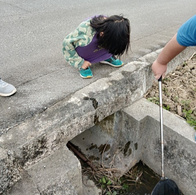 まして~ 出発進行~っ👉 現場につくと 即、 捕獲タイムっ! おたまじゃくし、 ヤゴ、