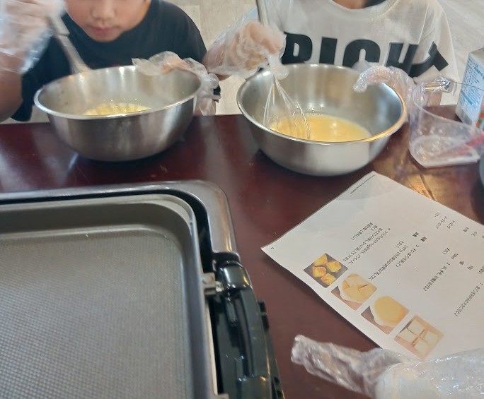 準備 開始っ(^O^)/♪ フレンチトースト班は ボウルに 牛乳と 卵 砂糖を 入れまして~