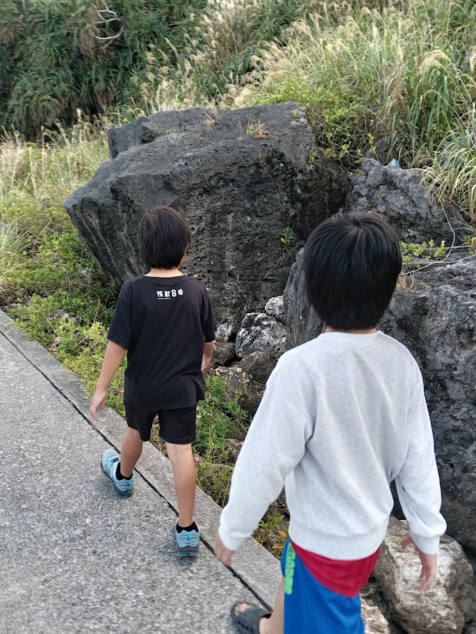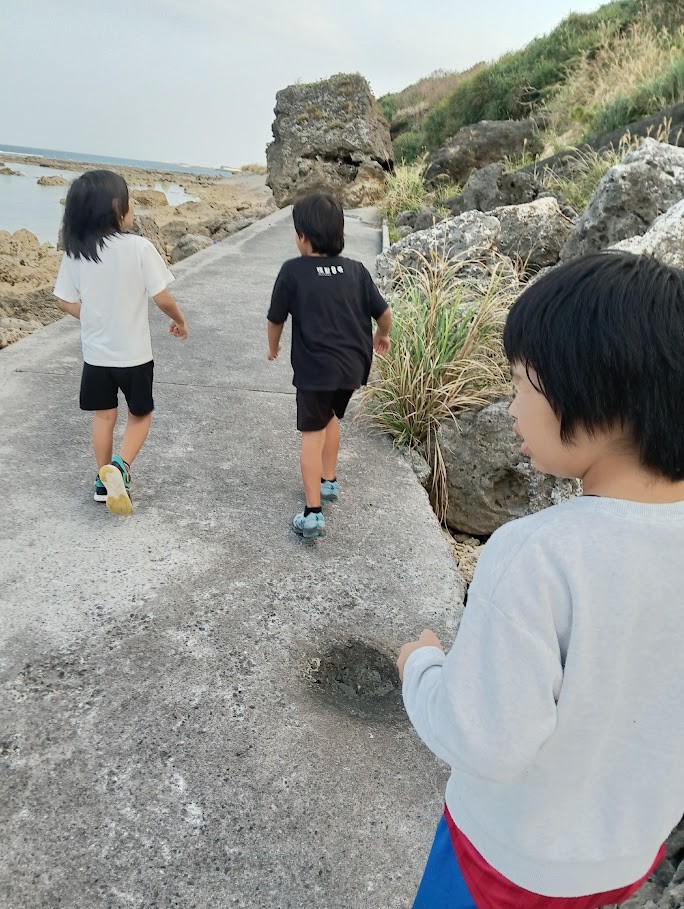 できました~♪ お次は 近くの 海岸探索~♪ こんな ところが あるんだね~ と みんな