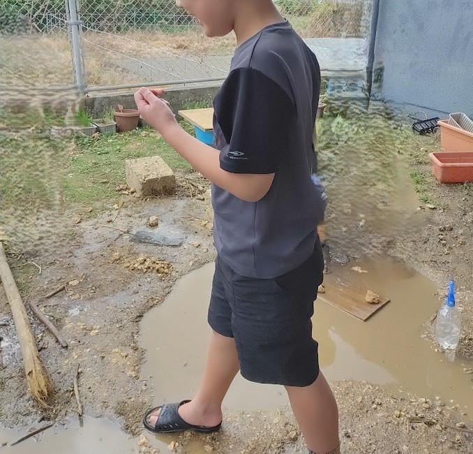 と、みんなが 土?水遊びを している ときに 一人で 遊んでいる 児童が 約2名っ!