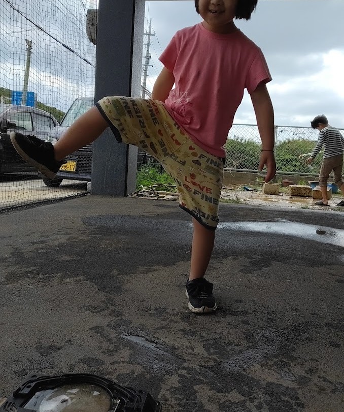 駐車場の 真ん中まで てくてく・・・ さっと 地面に 置いたかと 思ったら 踊り出せ~