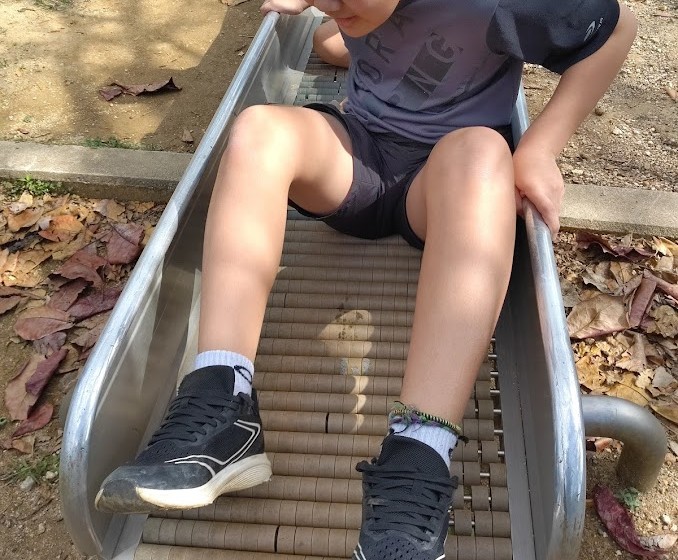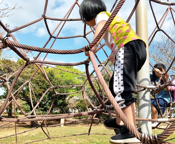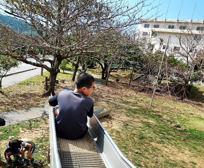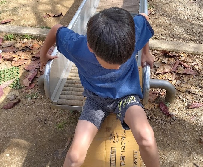 出発しますやで~ (=゚ω゚)ノ やってきたのは 定番の 新開児童公園~っ! 大小すべりだい、