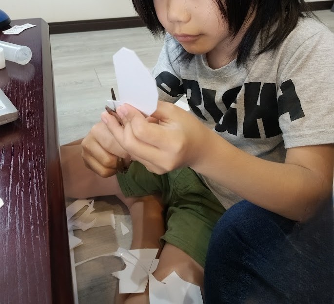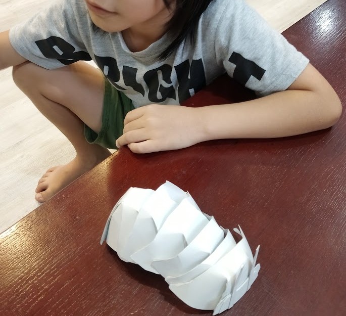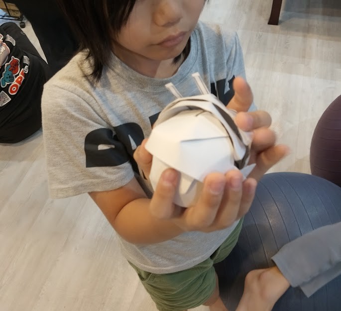 たち。 今日は なにする~♪ まずは Rくん。 先週、 PCで 紙を使った 工作を検索っ!