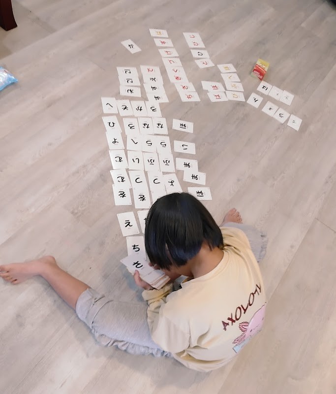 一緒に 遊んだ ひらがなカードが おもしろかったようで 集中して 並べて おりました♪