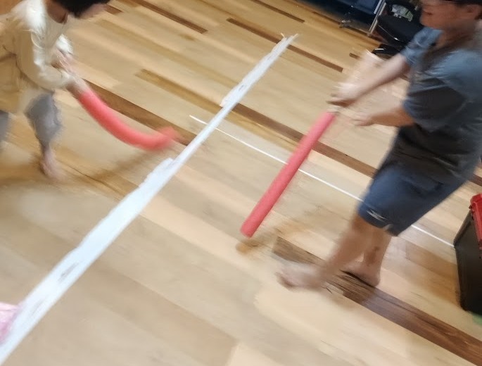 楽しんだ あとは・・・ たたかいごっこだ~っ(^O^)/! プールスティックで 年上の児童