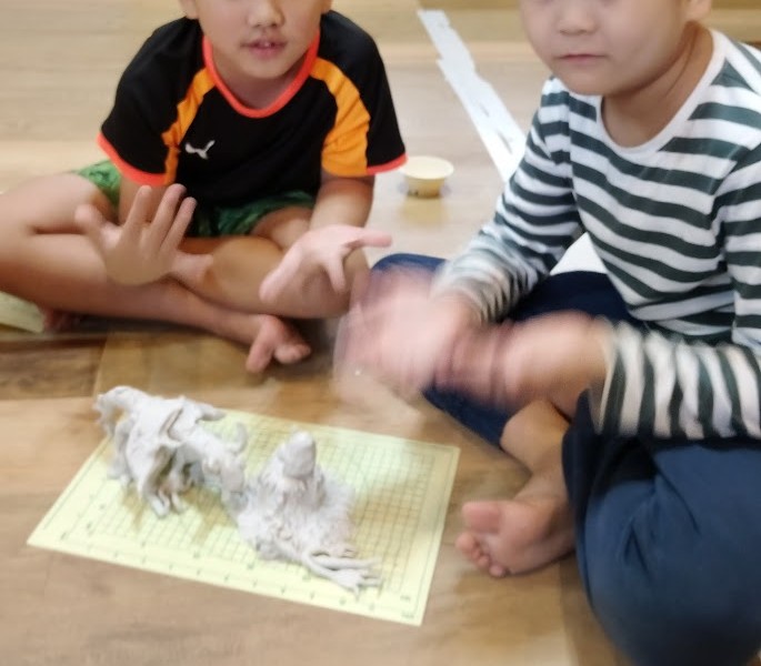 粘土遊びを 楽しみました♪ 粘土を楽しんだ 4人中 3人は 思い思いの ドラゴンを作成!
