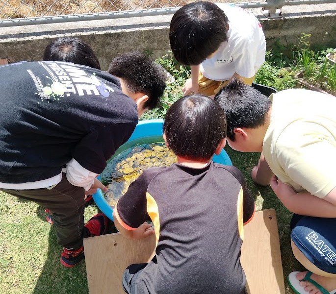 お声かけ したかと 思ったら そっこーで あちこちに 走り出す 児童たち。 話し・・・