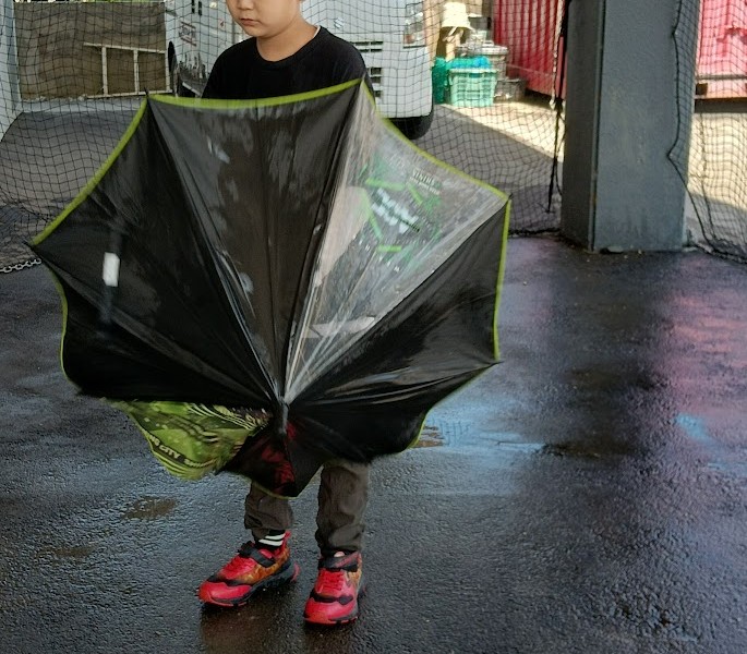 ということは みんな び し ょ ぬ れ ~ (≧◇≦)♪ かさ ガードを かいくぐって