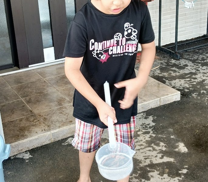 からの~ 水遊び 開始っ!💦 最初は 1つしかない みずてっぽうと スプレーで 応戦