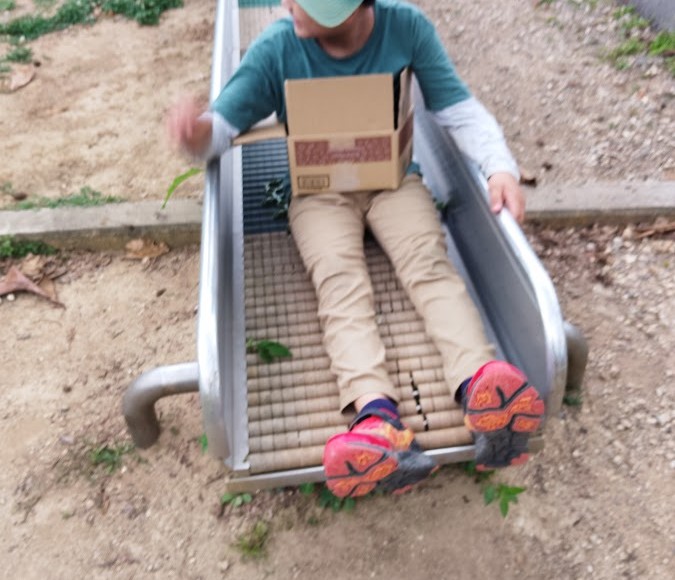 到着と 同時に 大きいすべり台へ 走り出す 児童多数っ! その後は 小すべり台、 ロープ