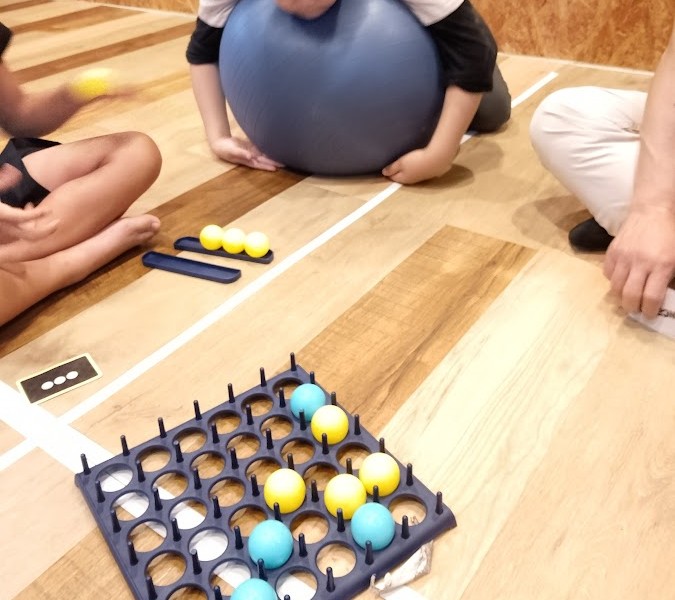内活動では からからつみき、 将棋、 バウンスオフ、 トランポリン、 バランスボールなど
