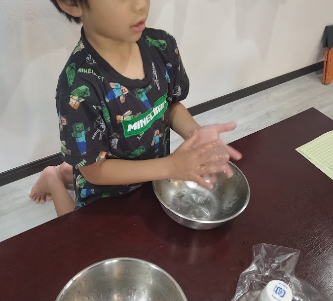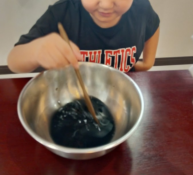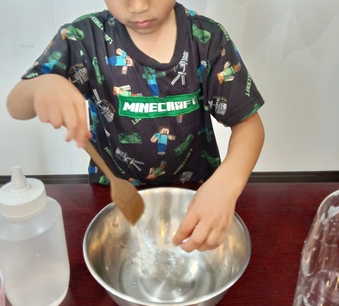 スライムを 作りました。 これは これで し ぶ い っ 👍 と 他児童から おほめの