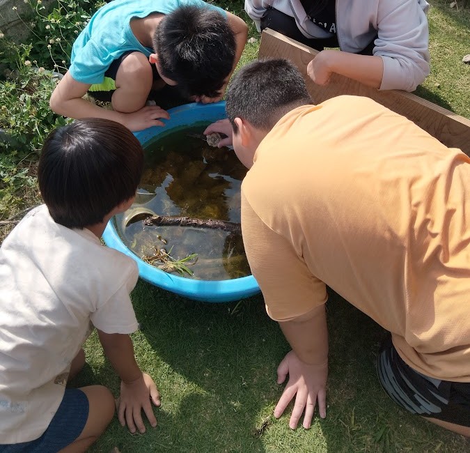 まずは たらいを きれいにして 他の場所から 生き物を とってきて 入れた方が いい