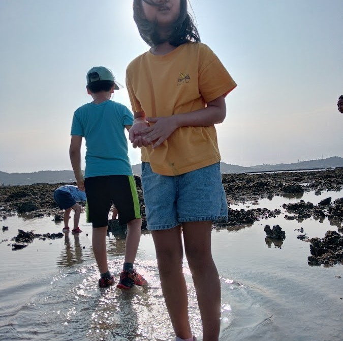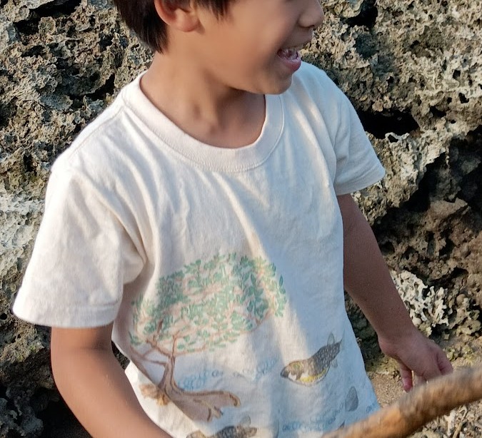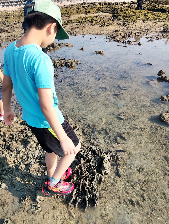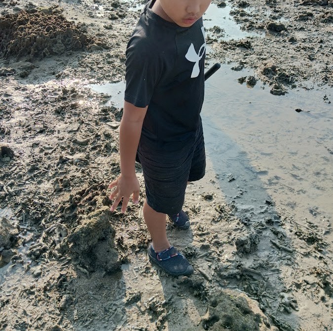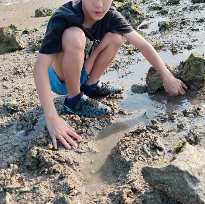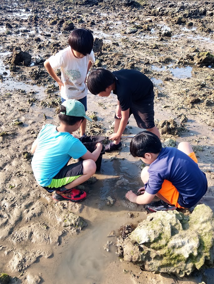 かえし~の 水の 中に 入り~の 岩場の 穴に 棒を 突っ込み~の が あちこちで