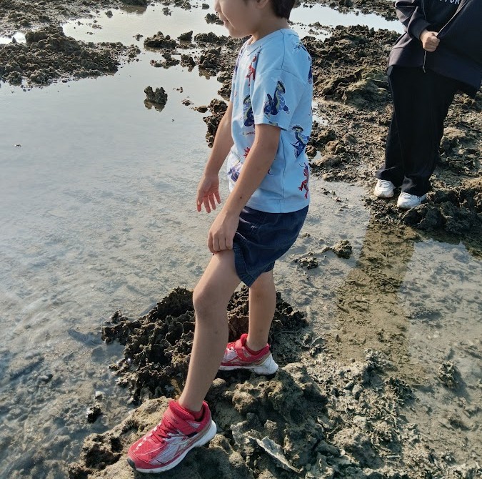 干潮の ピーク時 に あたってるぅ~\(^o^)/♪ 海に つくと めっちゃ ひいてるやん!