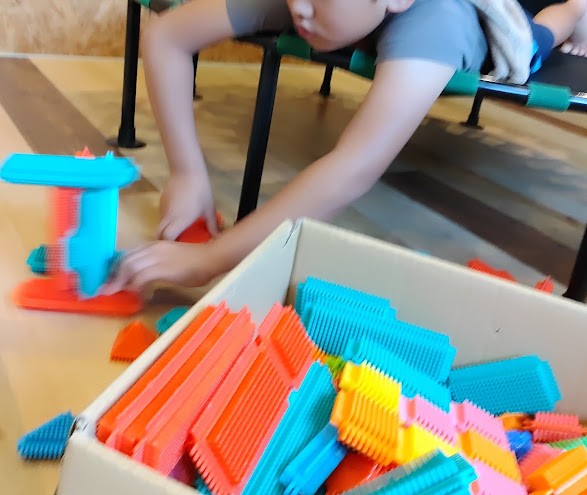 では 活動 開始っ! ぺたぺたブロックで たてものや 車、 ロボット などを 作ったのは