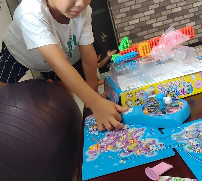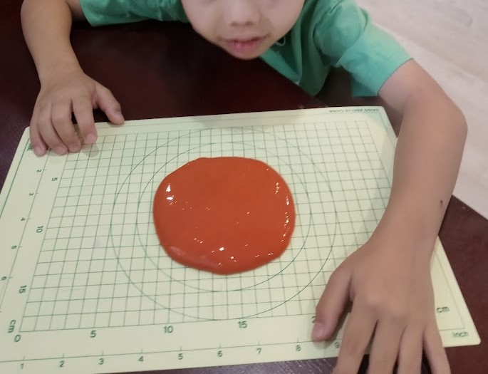 & 粘土を 楽しんでいたのは Tさん。 昨日、 作った スライムが ストライク だった