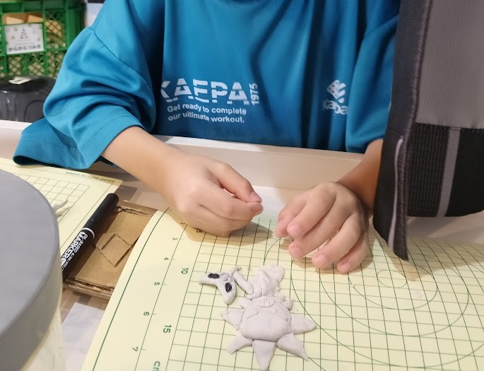 今日も いい感じの 柔らかさで 出来たようで そのスライムを ちぎったり 形を 作ったり