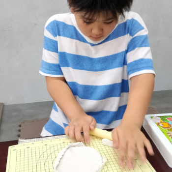 お次はYくん。 アルミホイルを丸めて・・・ ハンマーでたたいて さらにたたいてを根気強く行いました。 今日は叩きで終了しましたが後日、磨きに入りたいと申しておりました。