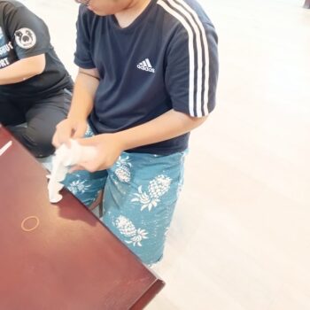 切り絵、バランスボール、ねんど、ボーリング、ブレスレット作り等々行っていましたがその中でもおもしろかった活動が・・・