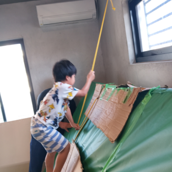 Kさんは昨日の続き?になるのか微妙なところですがダンボール(ボウリング)場に少し細工を加えたかったようでスタッフTさんに相談。うまくできなくて少しイライラがありましたが一緒に作ることができました。