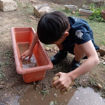 その横でYくんは 石を集めるべく掘削作業に没頭。 しかし、掘っていた場所