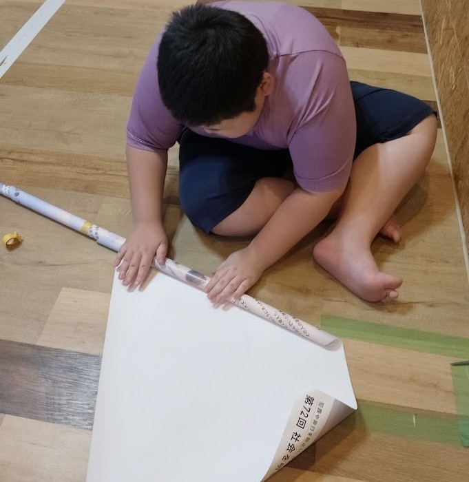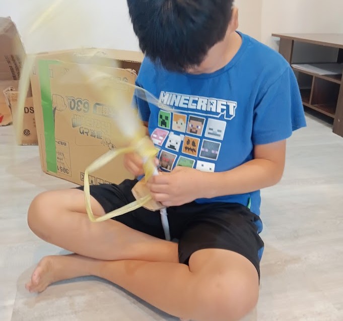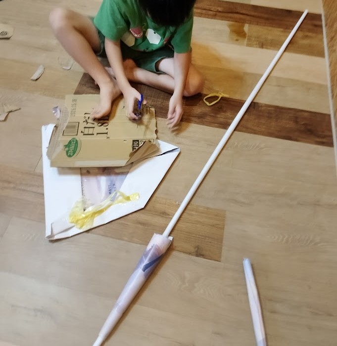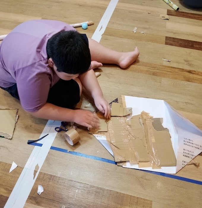 思ったらしく 俺も作るとRくんが 作成に取り組みました。 普段、あまり 工作を