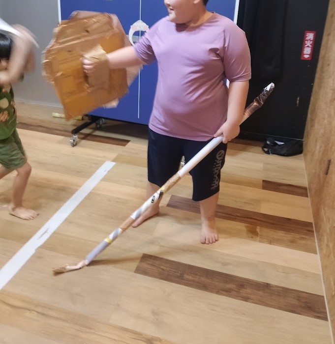 ニッコリ~(^^♪ 作ったのは 自分の体に合わせた大きさの 盾と な・なぎなた⁉