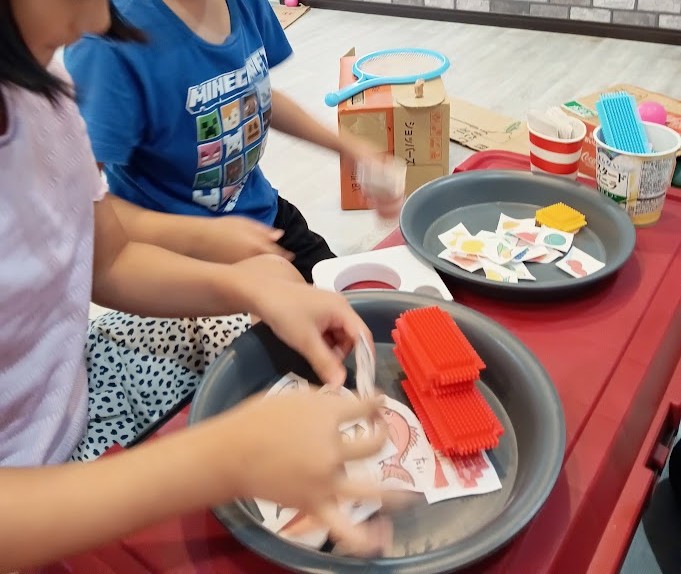 今日も いろいろな アイディアが 形になり 他の児童とも 遊ぶことができ