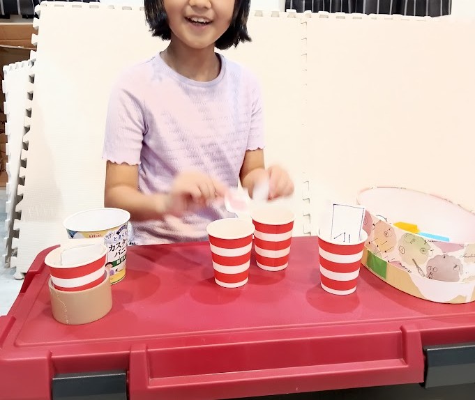 Sさんから お店屋さんごっこの お誘いが あったようで~ 🐸まで 一緒に楽しんで