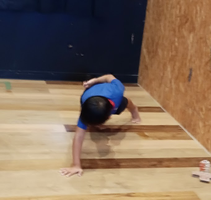 午後の活動を 開始しまーす。 まずは~ Kさん。 マットを だんだんに組んで 壁際に