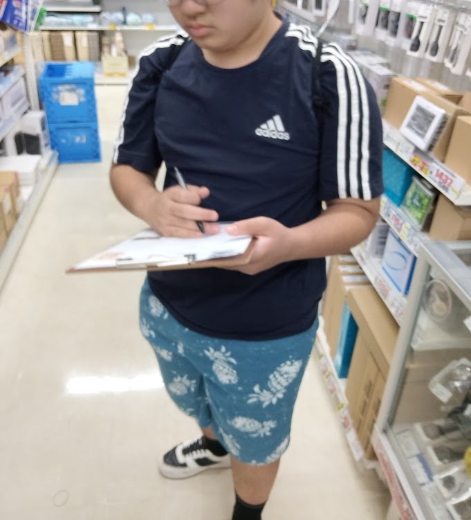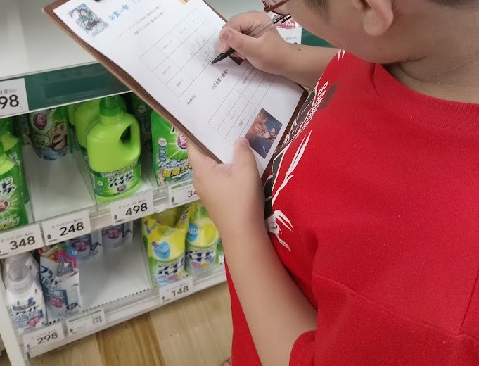 まわり ガムテープと洗濯のり どこが 1番安いのかを 調べる! というもの。