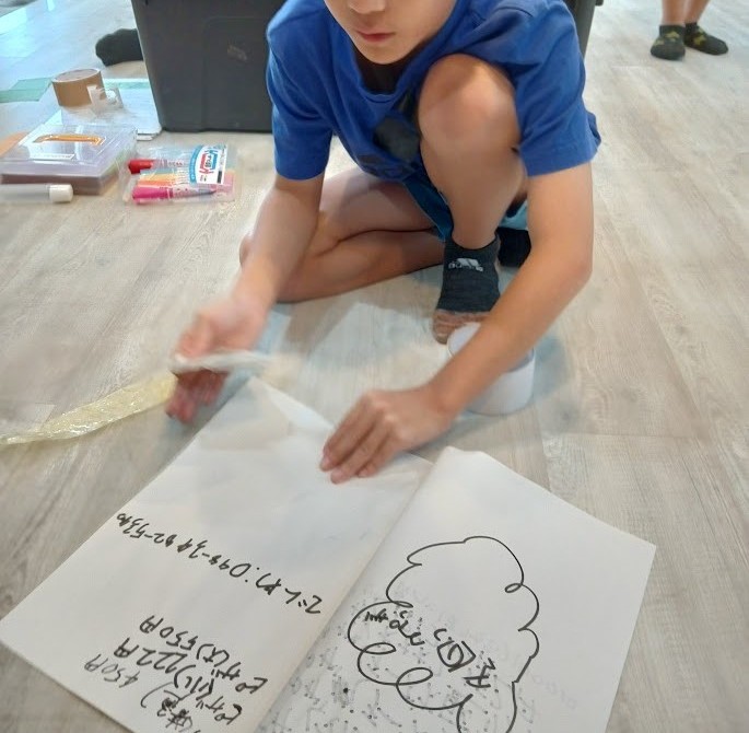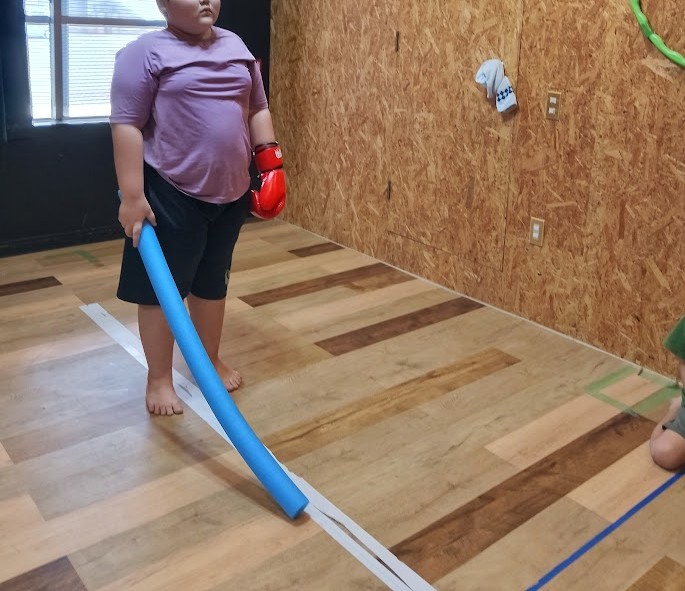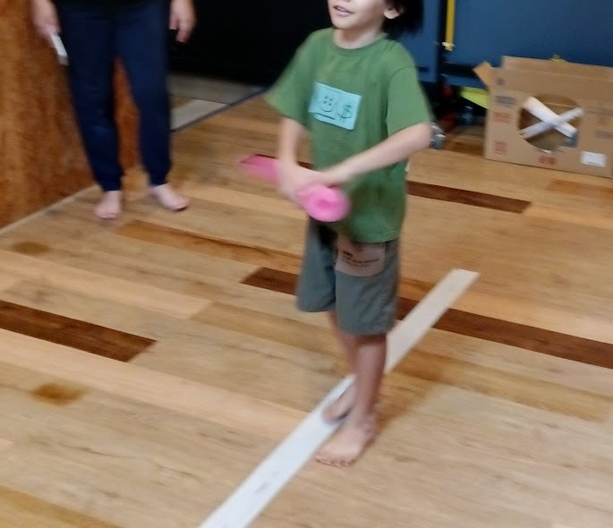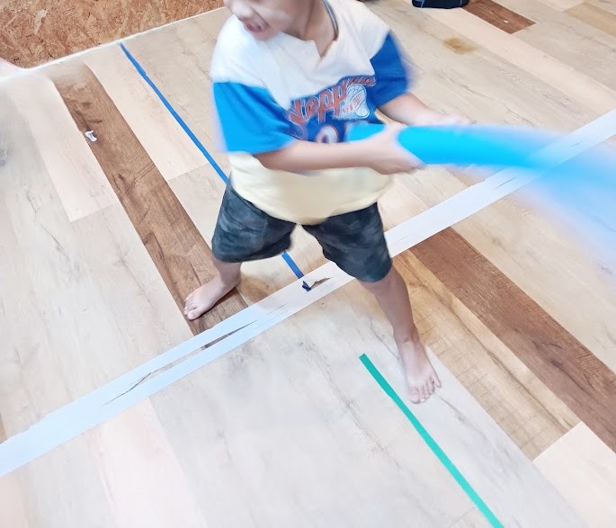 先発隊は 先日に 作った 剣やなぎなた、盾を使って 遊んでいたので スタッフYが 💡
