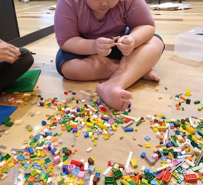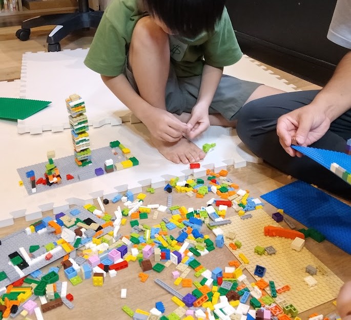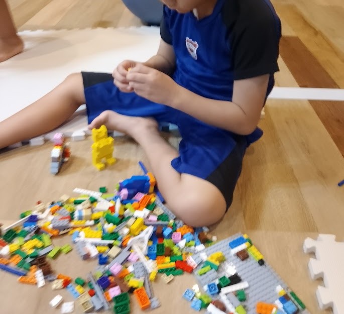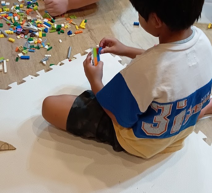 次の 活動は レゴブロック~っ! ちゃんばらしていた 児童がそのまま シフト~(^^♪