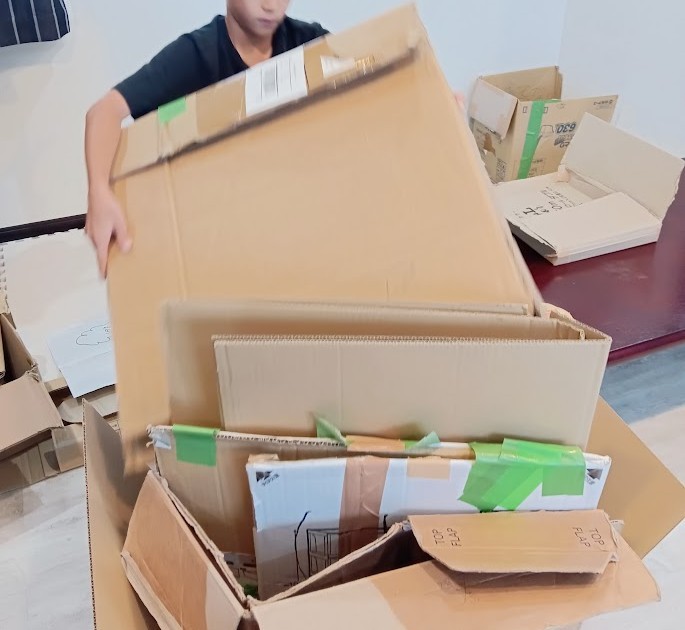 新カート作りのための ダンボール選定に。 いい感じの 大きさの ダンボール・・・