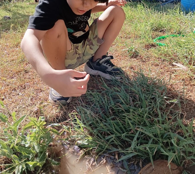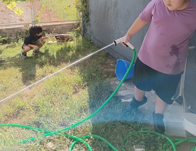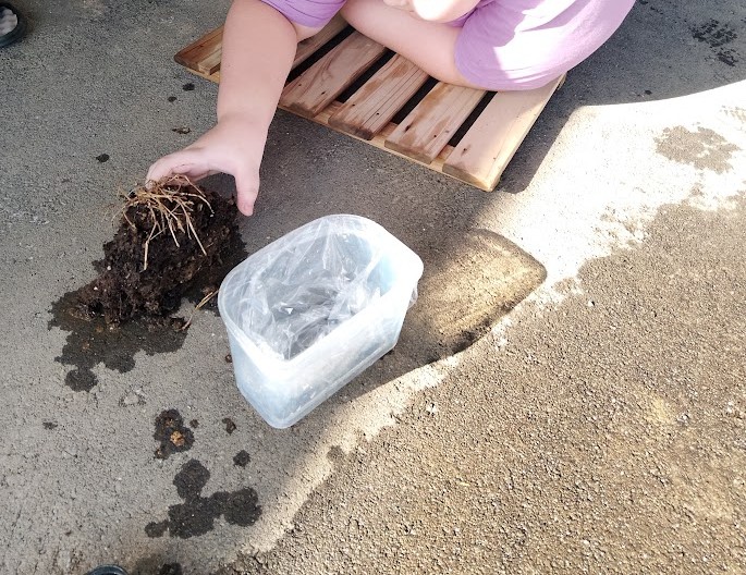 先発隊の RくんとRさんは 虫取り & 土いじり~♪ 合間に 水遊び~ ヽ(^。^)ノ