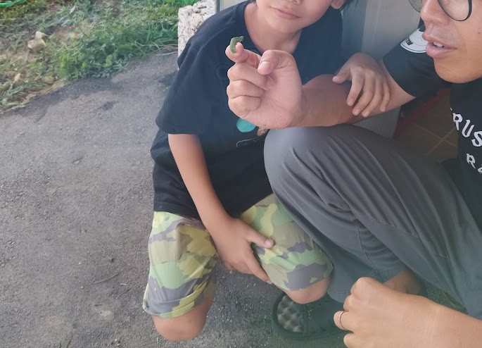 ちょい 熱かったんですが 汗💦を かきかき 虫取りを 続行していると・・・ バッタや