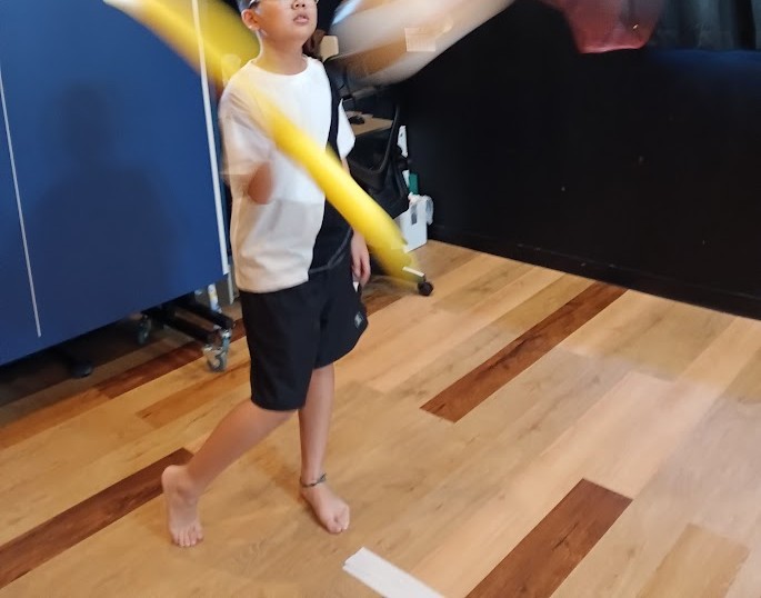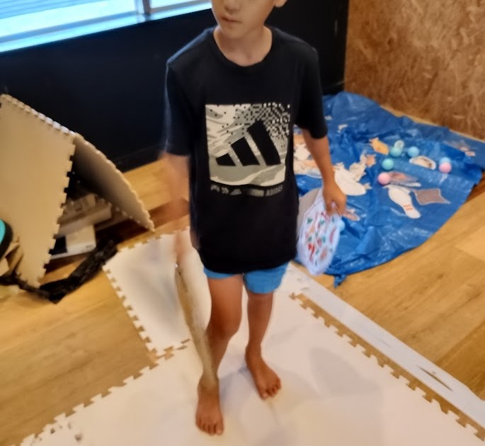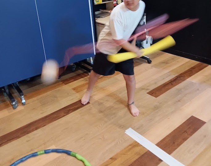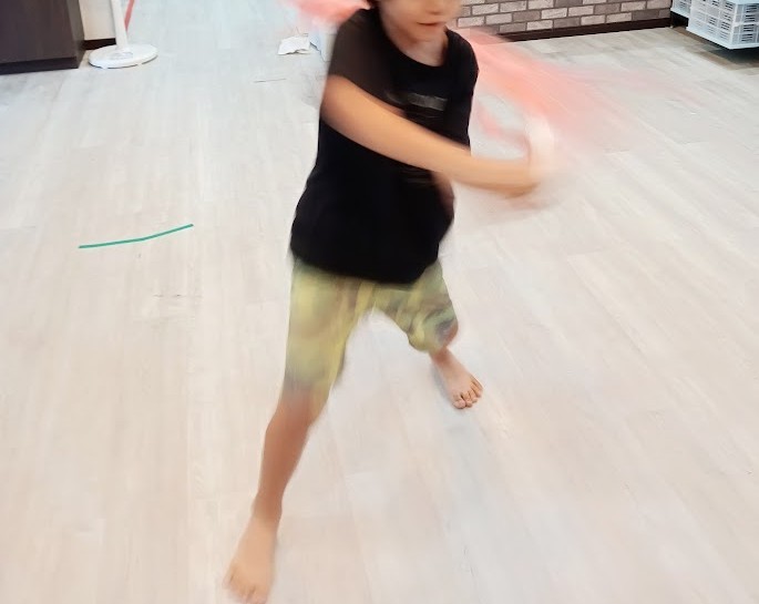 プールスティックを 使って いろいろな 大きさのボールや 風船を 切るっ( `ー´)ノ✨