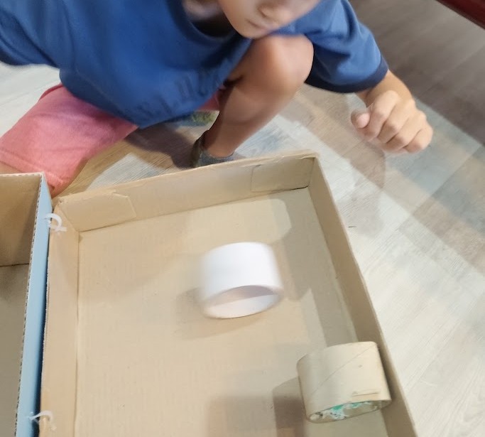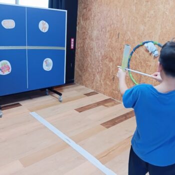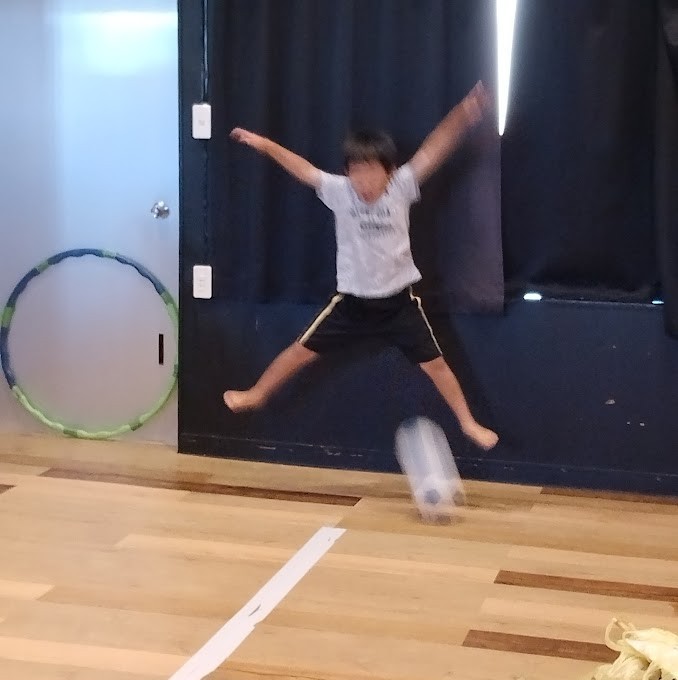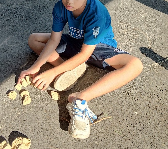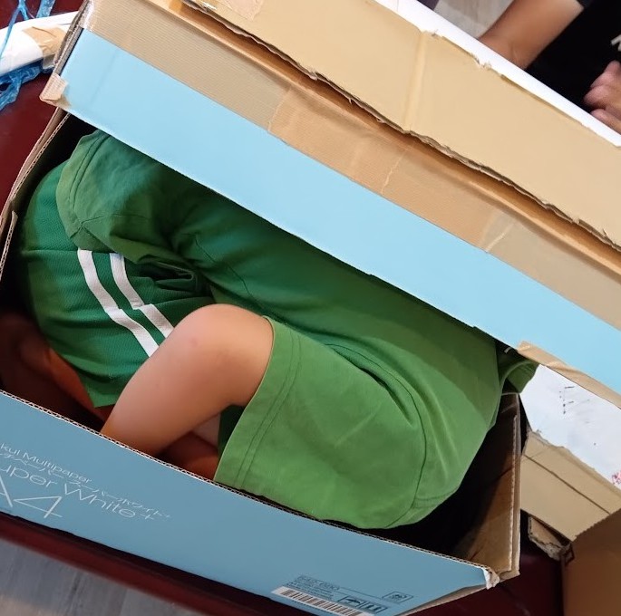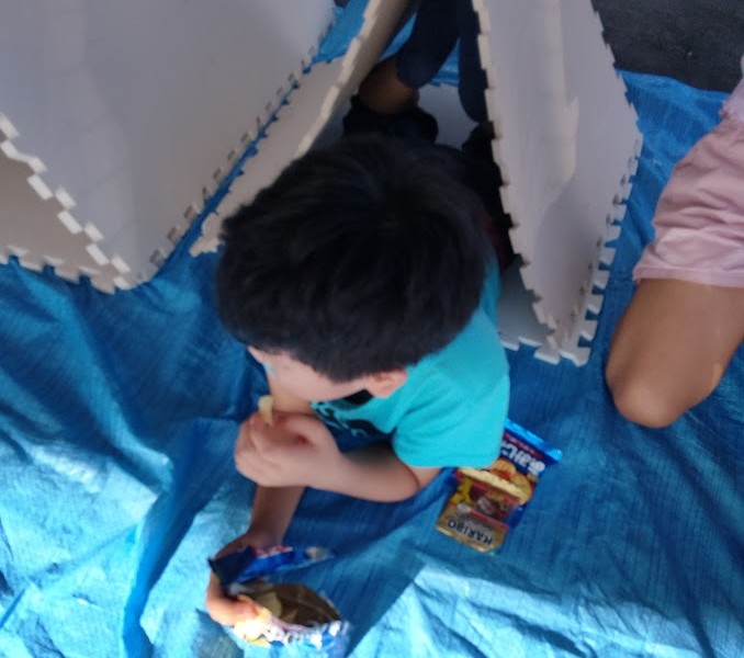 三角ハウスを作成後、そこで おやつを 食べる 児童も~♪ 今日は みんなが あちこち