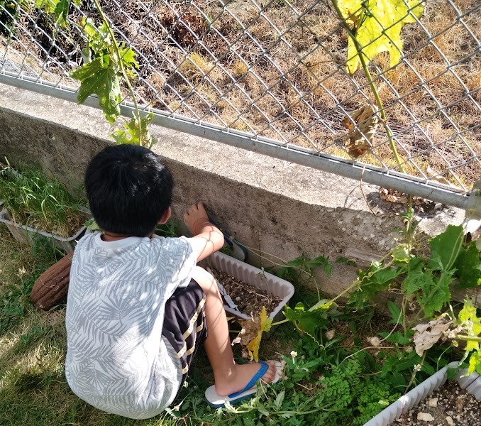 外でも 各自、 色々な 活動おこないました~ (≧◇≦)♪ 火起こし、虫取り、へちま収穫