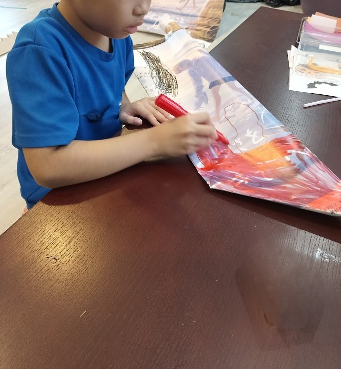 そのよこでは Sくんが 大剣を 作成中~ (^O^)/ 色も塗って いけてるやろ~(^^♪
