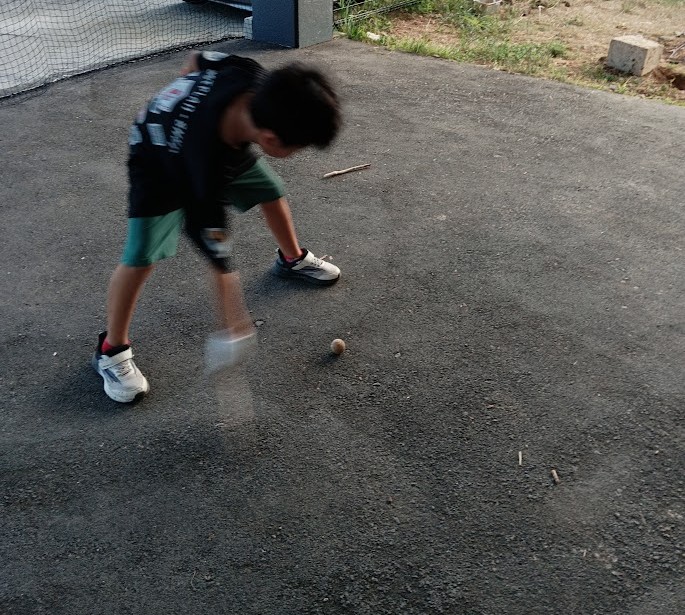 投げるだけだと 面白くないから~ と 前回の 火起こしで 拾ってきた ほっそい 木の棒