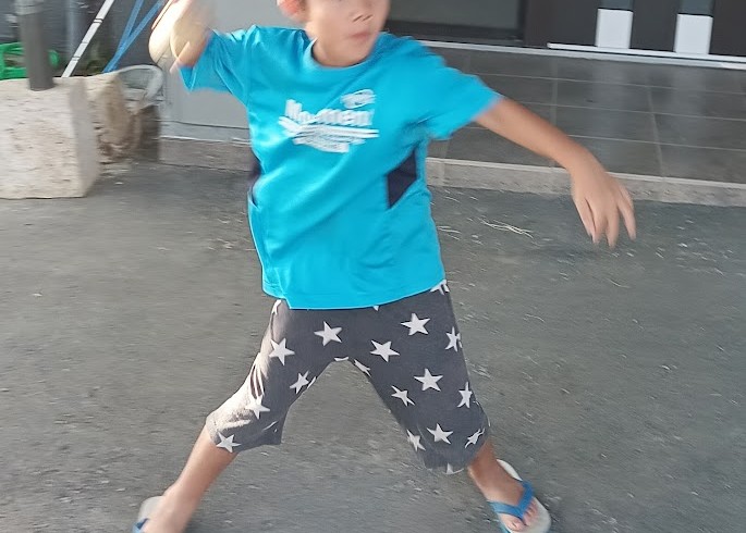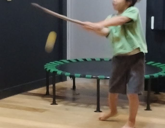 じゃあ 軽く 振って 当てることが できるなら いいよ! と 難しい 課題を 投げた