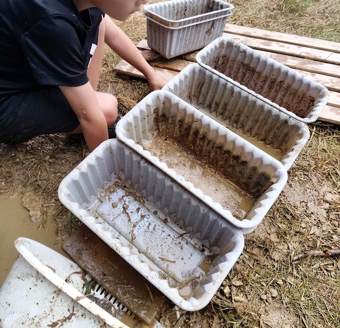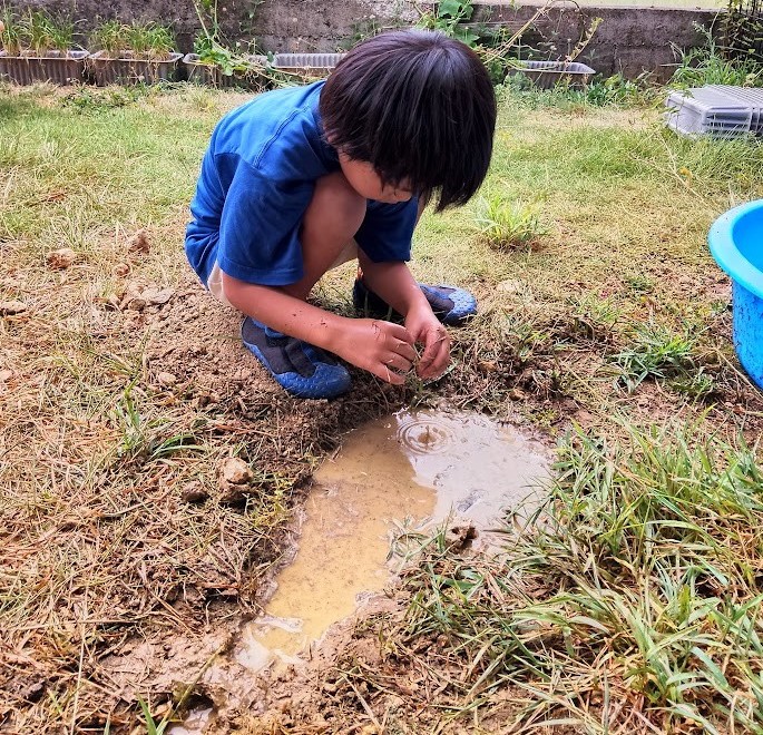 ダムを 作ります。 水路を 作って~ いると・・・ Kくん到着からの 合流~っ!